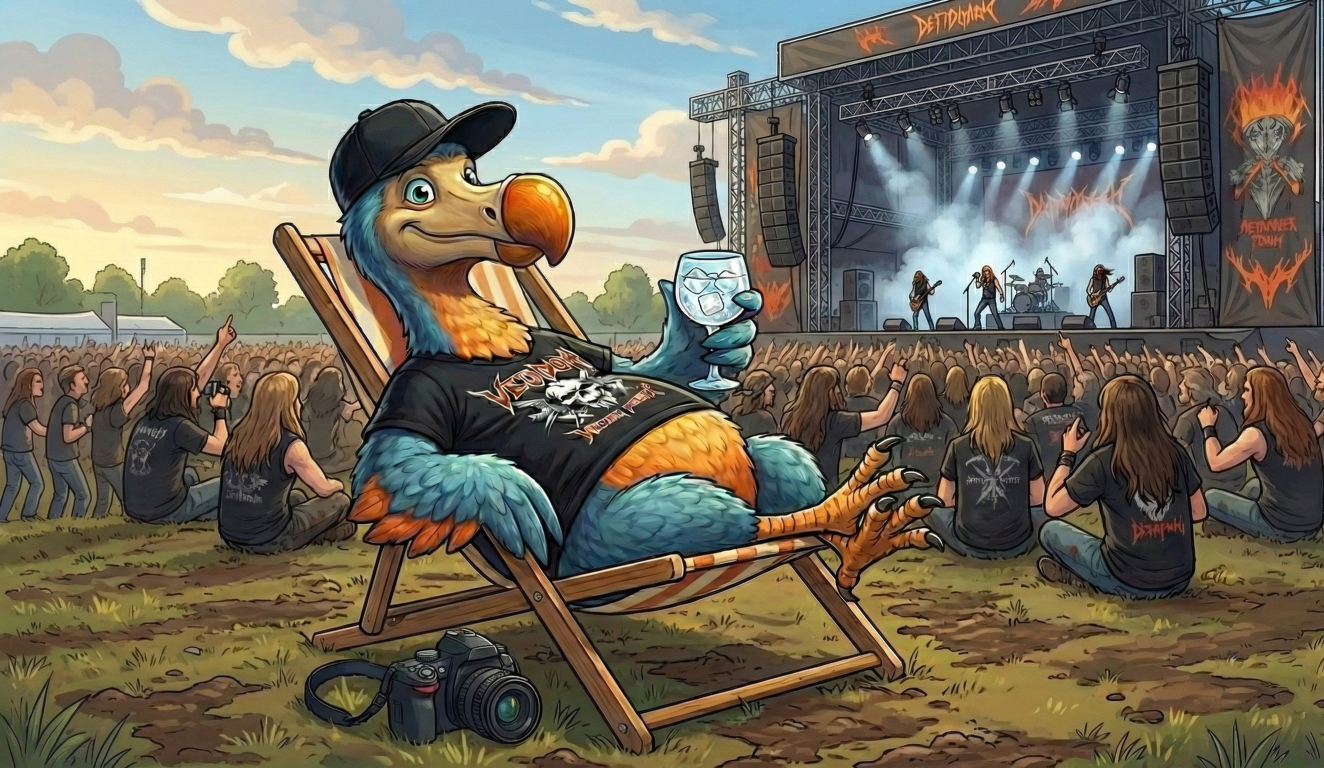 Gestatten: Der Dodo. Erkennungszeichen? Die Kappe sitzt fester als die Frisur, und wenn es in seinen Ohren nicht klingt, als würde die Welt gerade in einem gewaltigen Feuersturm aus Death- und Blackmetal untergehen, ist es ihm eigentlich zu leise.